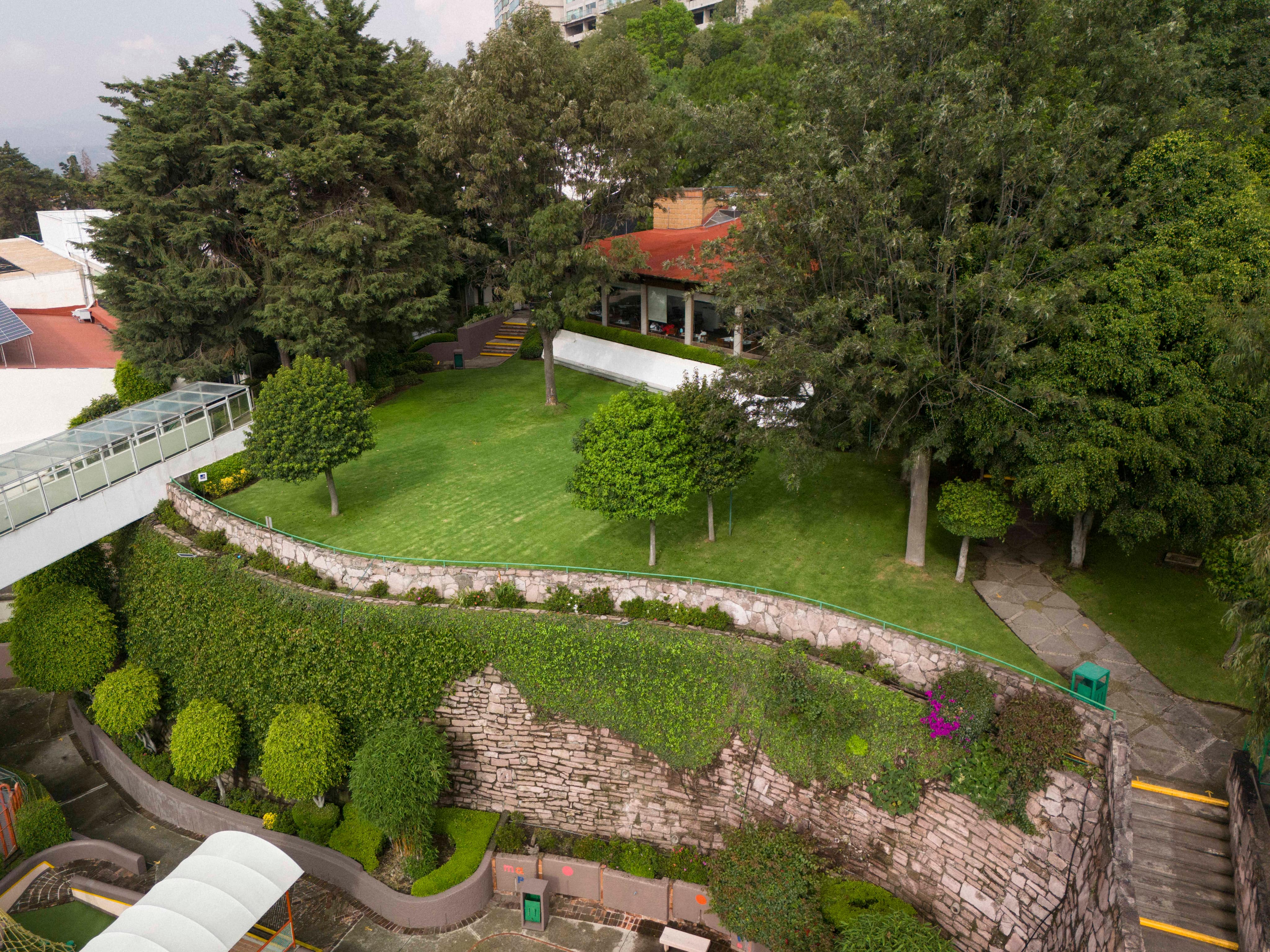 Amplios jardines y zonas arboladas para convivir, descansar o realizar actividades al aire libre en un ambiente natural.